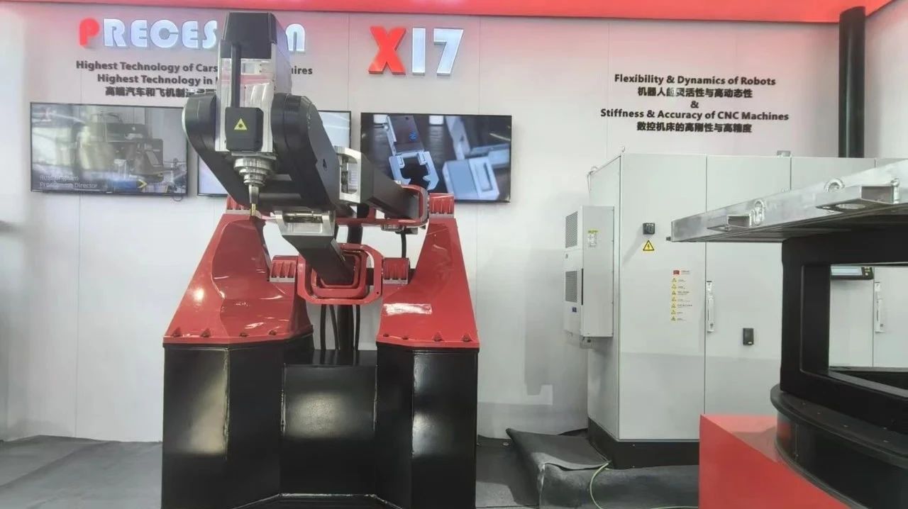 X17机器人机床优点是柔性好和布局容易;一般工业关节机器人的缺点是刚性不足、精度较低、铣削加工效率较低,但X17混联机器人与传统的工业机器人对比,X17混联机器人能具有更高的刚性,精度和铣削加工效率。